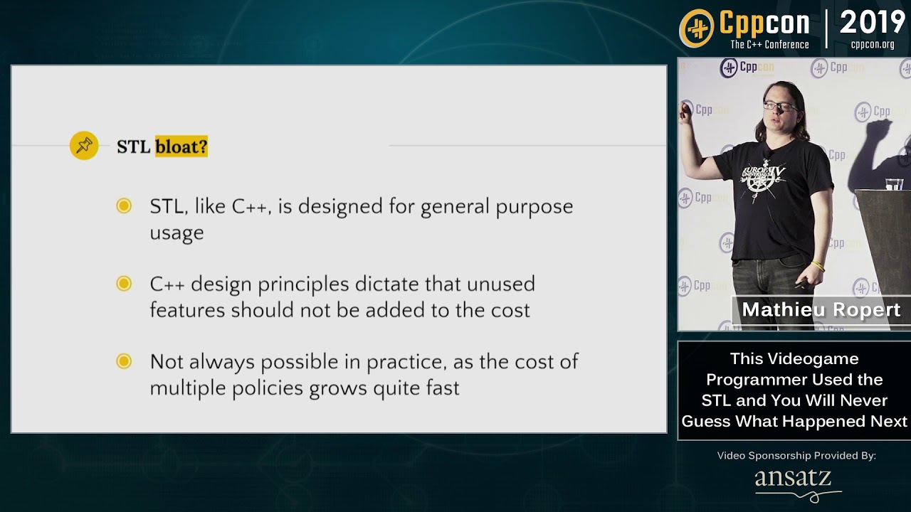 Is there any truth to it? Is it all a misconception?I have been using the STL in a production videogame that is mostly CPU bound and in this talk we will unveil the truth behind the rumours.